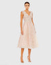 Pink Embroidered Sleeveless Feather Detail Midi Dress