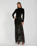 Crafted from velvet fabric, this gown features long sleeves and a mock neckline for a sophisticated look. The sheer bottom is adorned with beautiful floral embroidery, adding a touch of elegance. Perfect for any formal occasion, this gown will make you feel confident and glamorous.