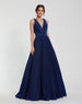 This sleeveless gown features a flattering v-neckline and a beautiful ballgown silhouette, perfect for any formal occasion. Crafted from shimmering lurex fabric, it offers a touch of elegance and sophistication.