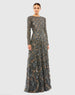 Crafted with a hand-embellished mesh overlay, this gown boasts ethereal elegance. The semi-sheer long sleeves add a touch of allure, while the beaded waist detailing creates a flattering silhouette. Perfect for any formal occasion, this gown is a timeless addition to your wardrobe.