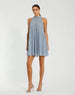 This embellished trapeze dress boasts a high neckline and sleeveless design, exuding modern elegance. The trapeze a-line silhouette offers a comfortable fit, while the shimmering sequin embellishments adds a touch of glamour to your look.